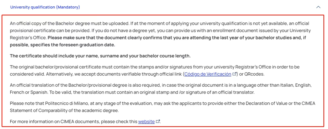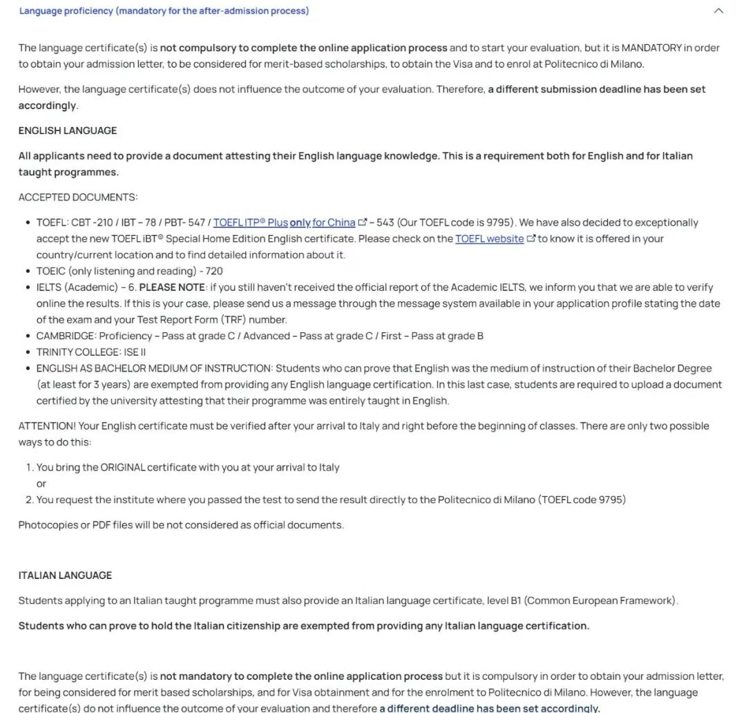 【注:如果不提供该文件,国际生招生办公室将根据您的*单计算GPA绩点/加权平均分,并且米兰理工大学对自己评估后的结果保留最终的解释权】