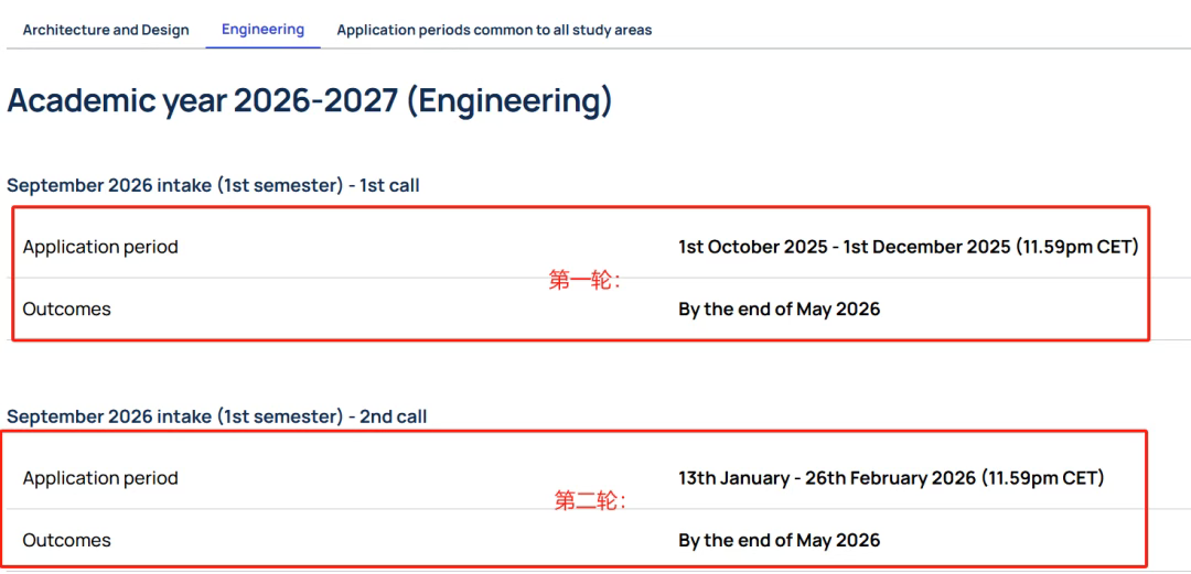 工程学院:两轮申请(第*轮2025.10.1-12.1;第二轮2026.1.13-2.26)