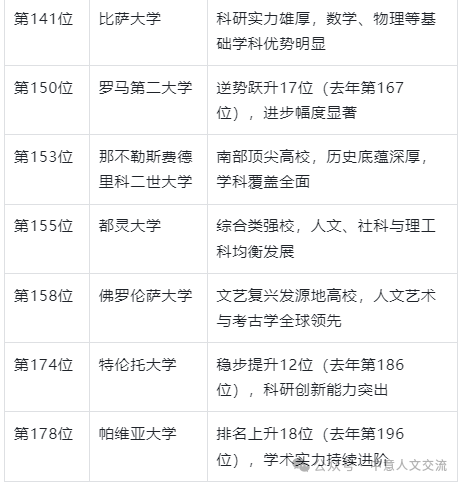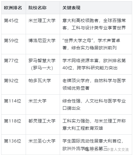 意大利的高等教育体系在此次排名中呈现出整体向上的态势。多所大学在学术声誉、雇主合作、科研产出及国际化水平等多个维度均有亮眼表现,形成了较强的综合竞争力。