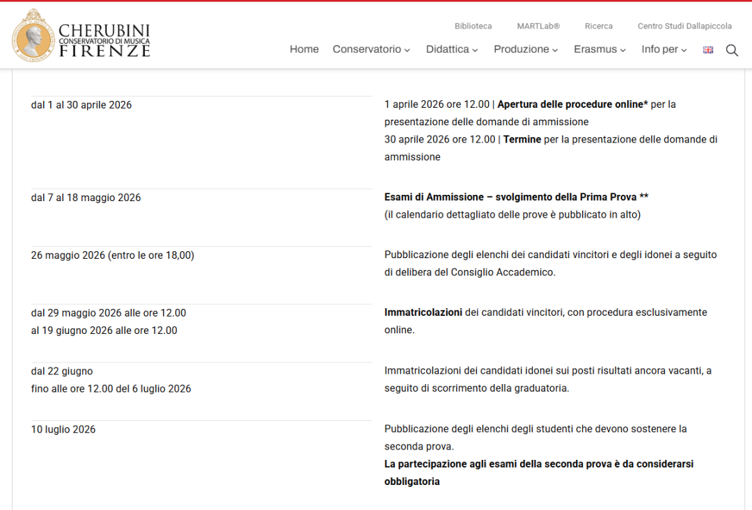 (7月25日:向未通过意大利语水平测试的国际学生发送通知,他们将被要求参加音乐学院组织的特定课程。)